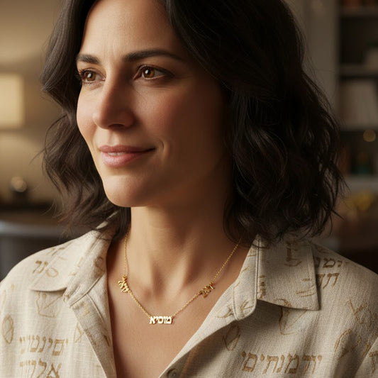 14K Gold Multiple Hebrew Names Custom Necklace.