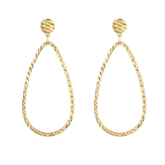 14K Gold Diamond Cut Tear Drop Earring