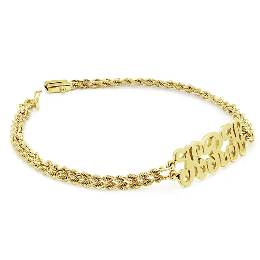 Triple Initial Charm Bracelet with Double Rope Chain in 14K Gold