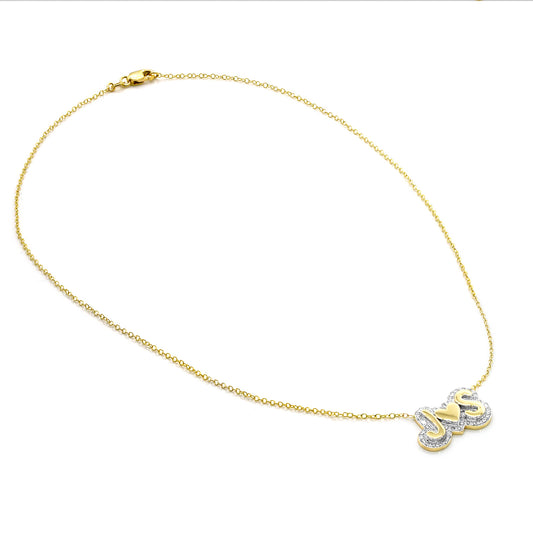 Double Initial with Heart Charm Necklace with around 0.40ct in Diamonds and 14K Gold