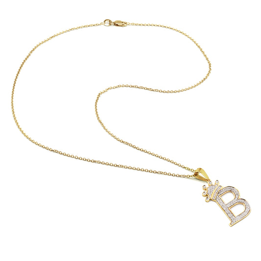 14K Gold Crowned Initial Pendant Charm with Diamonds and Chain Options