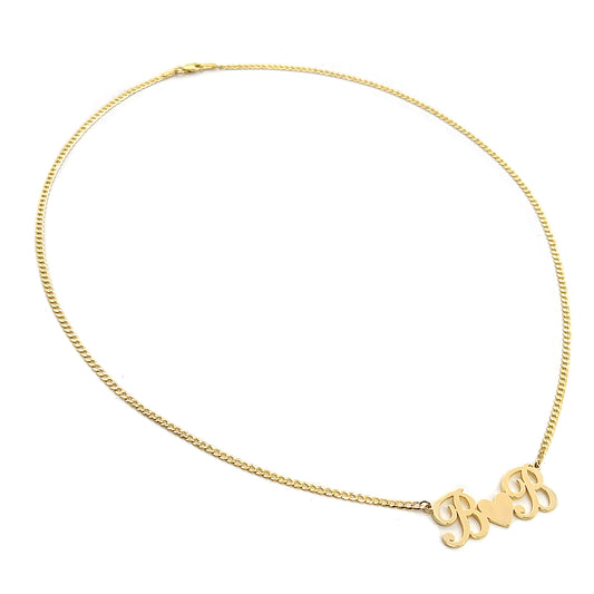 Two Initial Pendant with Heart in High Polished 14K Gold