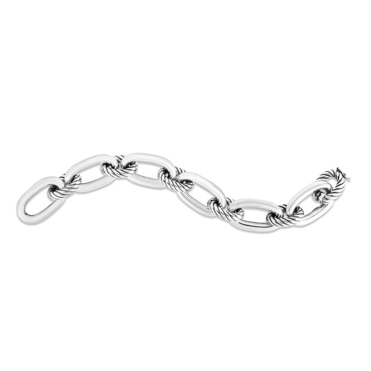 Sterling Silver Italian Cable Link Bracelet with Alternating Small Oval Links and Large Twisted Oval Links