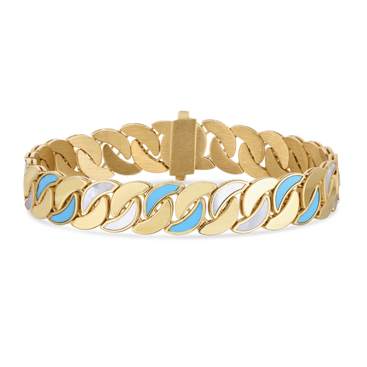 14K Gold Cuban Link Bracelet with Colored Enamel and Snap Clasp