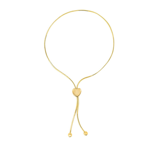 14K Gold Snake Chain with Heart Slide Friendship Bracelet