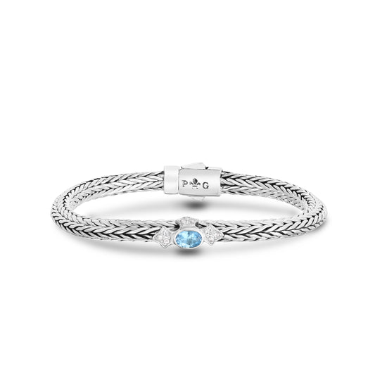 Sterling Silver Double Strand Woven Bracelet with Gemstone