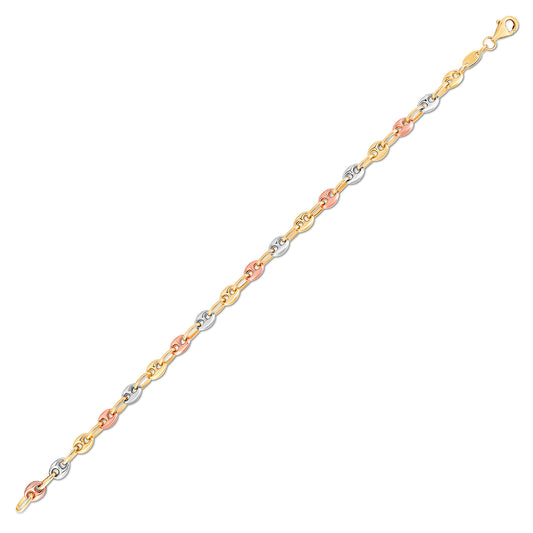 14K Tri-color Gold Puffed Mariner Link Chain Bracelet