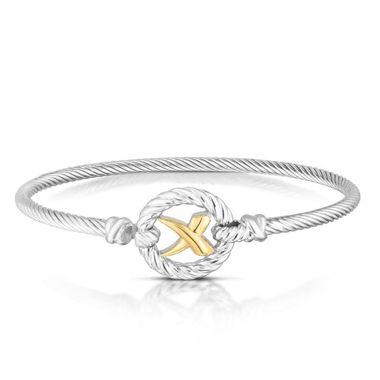 18K Gold & Sterling Silver Italian Cable 'X' Bangle