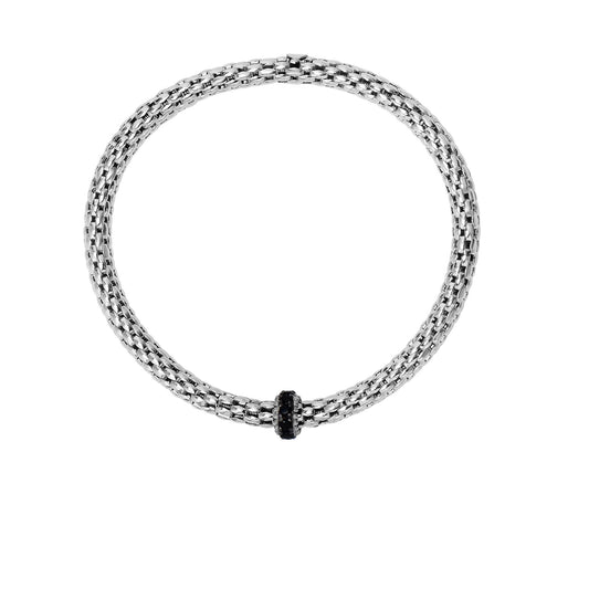 0.13ct Diamond and Sterling Silver with Tube Popcorn Bangle with Hook Clasp