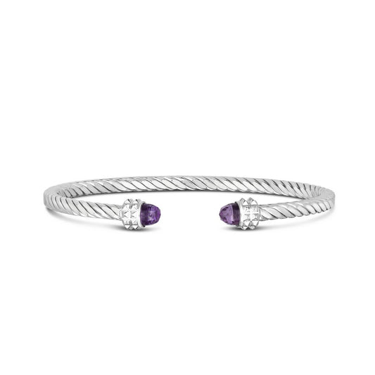 18K Gold & Sterling Silver Italian Cable Cuff Bangle with Gemstone Options