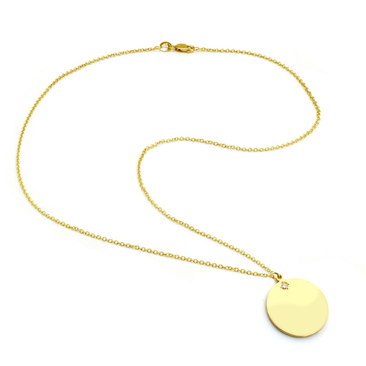 High Polish 14K Gold Engravable Disk with Accent Diamond