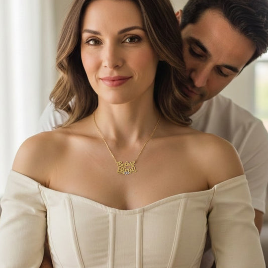 Custom 14K Gold Name Plate Necklace with Diamonds | Double Plate