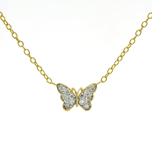 Diamond Pave Butterfly Charm Necklace in 14K Gold