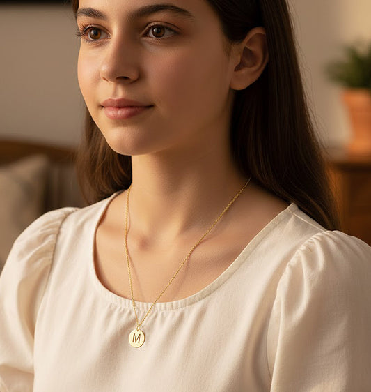 14K Gold Yours Truly High Polished Disc Pendant Initial Letter Necklace