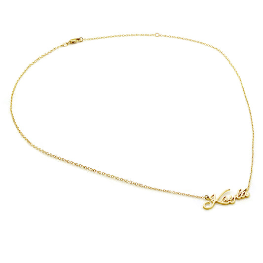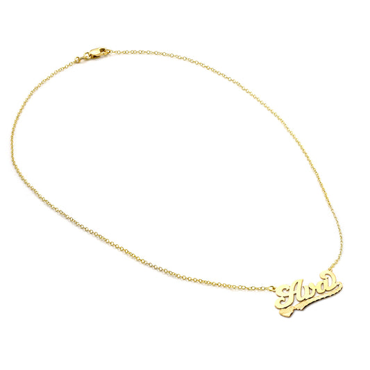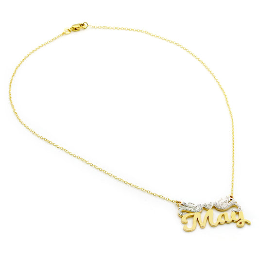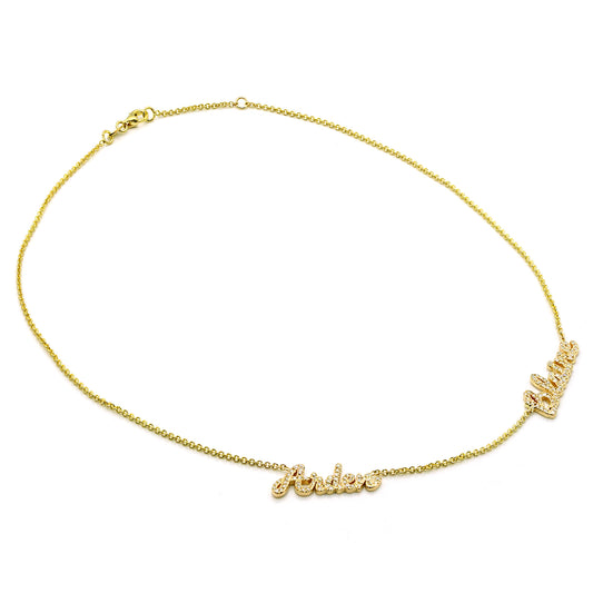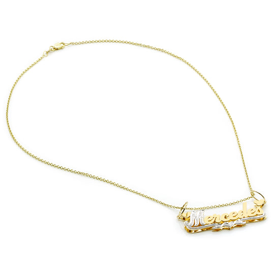 Custom 14kt. Gold Nameplate Necklace Covered in Rhodium Sparkle