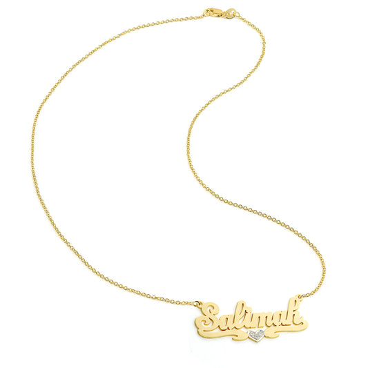 Custom 14K Gold Name Plate Necklace with Diamond on Heart