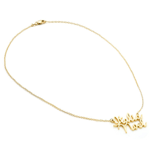 Hebrew Nameplate Necklace in 14K Solid Gold | Small