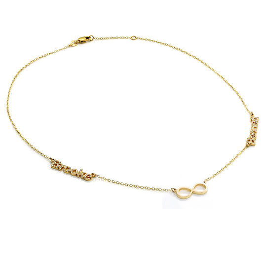 Two Names with Diamonds and Infinity Charm Necklace in 14K Gold