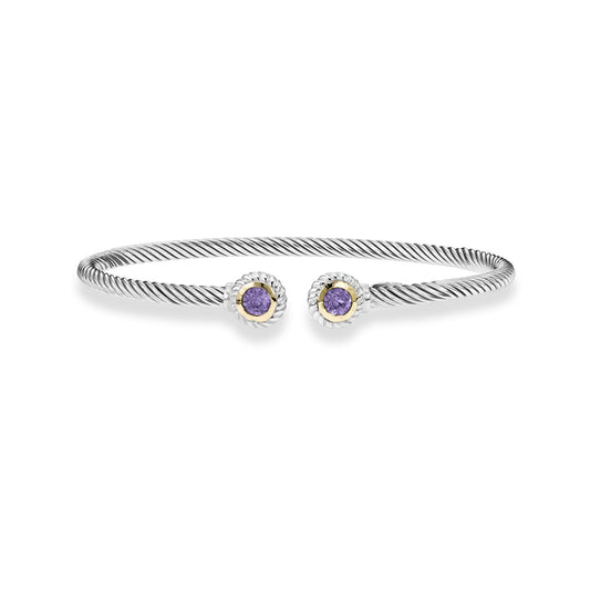18K Gold & Sterling Silver Italian Cable Renaissance Bangle with Gemstone Options