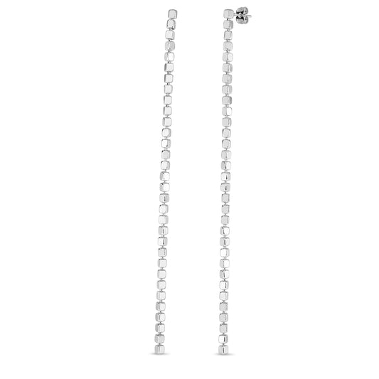Silver Cube Link "Cubo" Shoulder Duster Earrings with Post & Nut Back