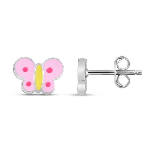 Sterling Silver Polished Enamel Butterfly Studs with Push Back Closure.