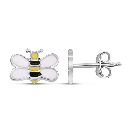 Sterling Silver Polished Enamel Bumble Bee Studs with Push Back Closure.