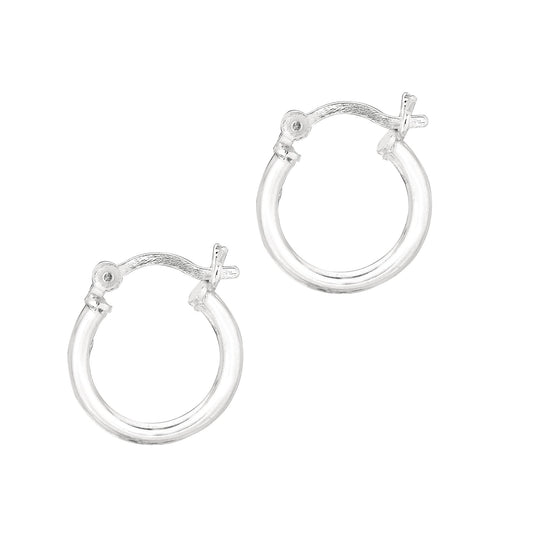 Sterling Silver Polished Round Tube C Hoops with Push Back closure.