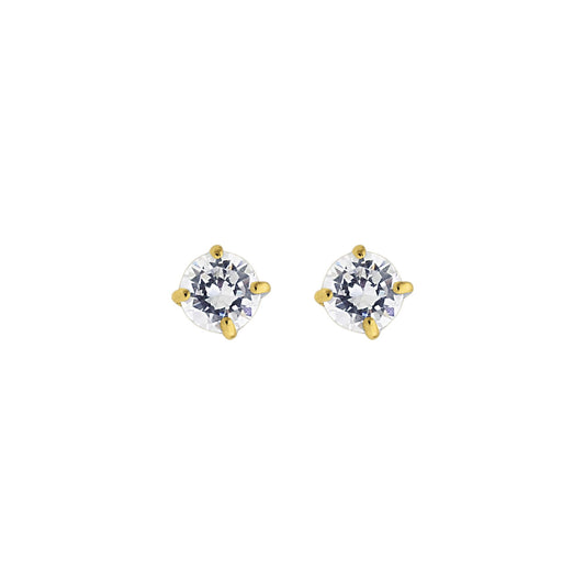 14kt Gold Yellow Finish 8mm Polished Round Post Earring with Push Back Clasp with 0.0100ct 1mm White Diamond