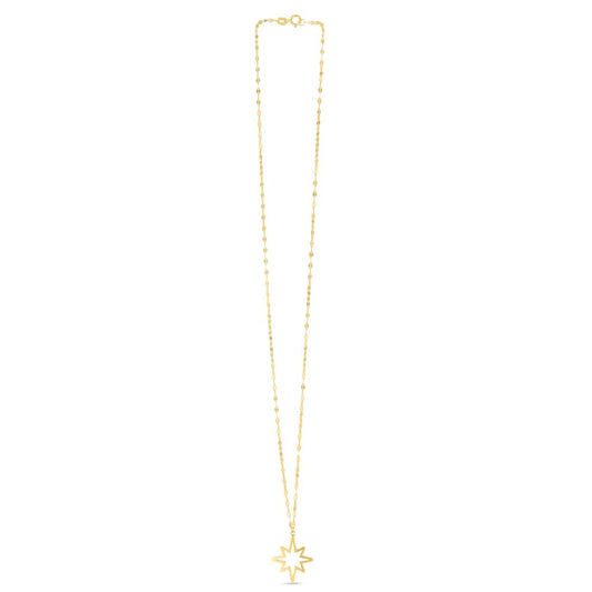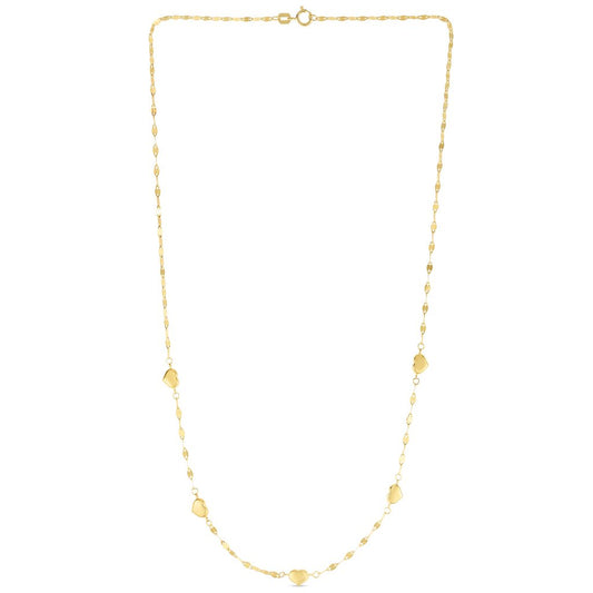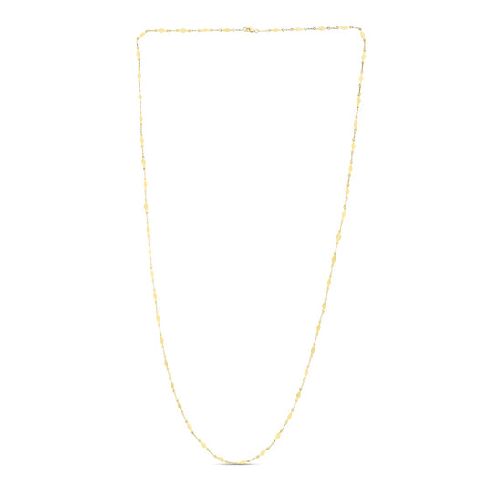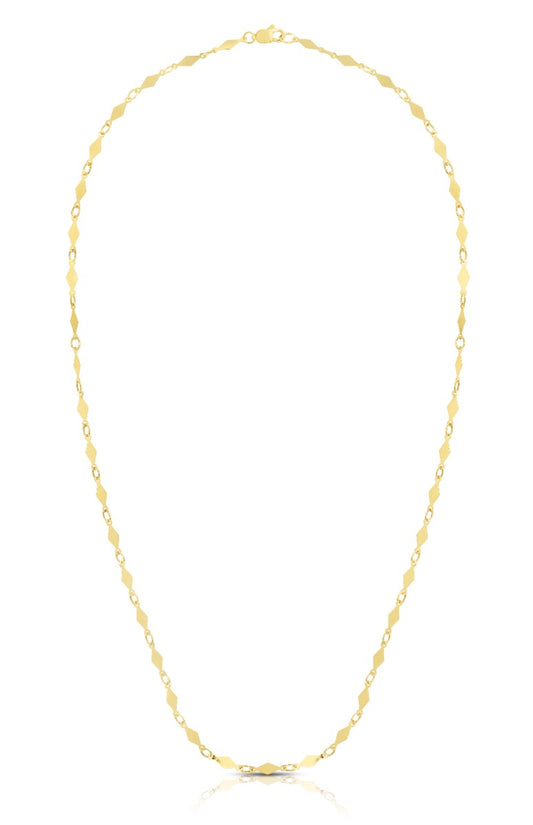 14K Gold Polished Long Diamond Shape Station Mirror Chain Necklace with Lobster Clasp