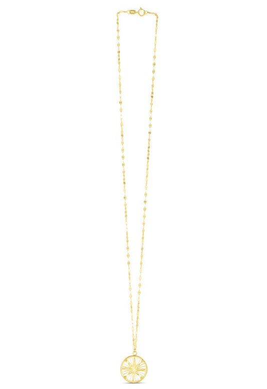 14K Gold Polished Diamond Shape Lariat Mirror Chain Necklace