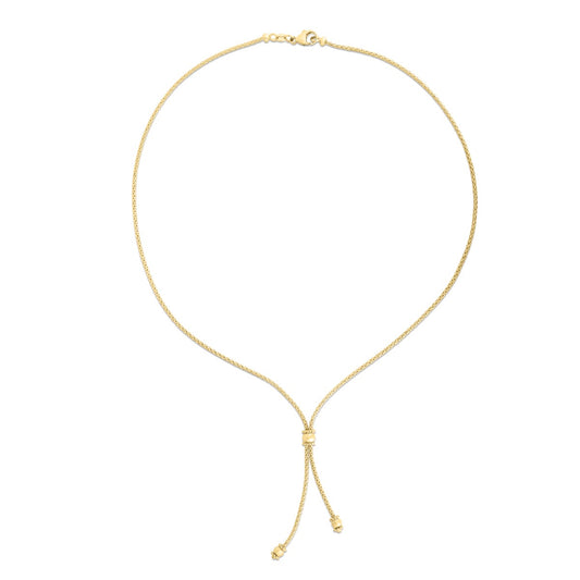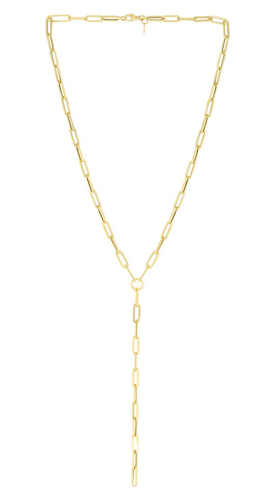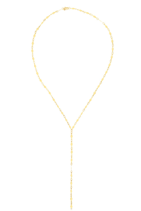 14K Gold Polished Mirror Chain Drop Lariat Necklace