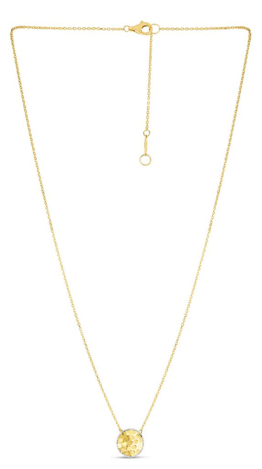 14K Gold Circle Disc Necklace with Paperclip Chain and Toggle Closure