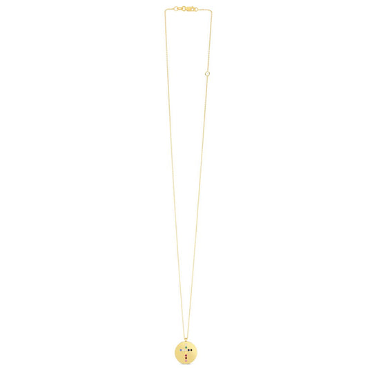 14K Gold and Gemstone Inlay Rainbow Cross Disc Medallion Necklace