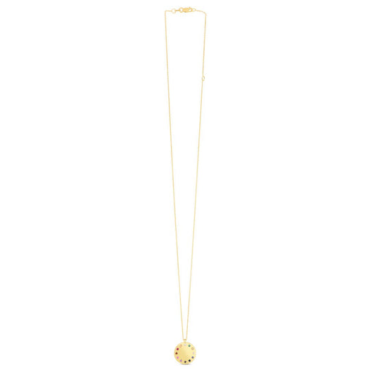 14K Gold and Gemstone Inlay Rainbow Dial Disc Medallion Necklace