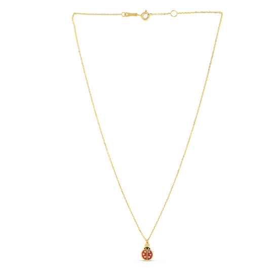 14K Gold Enamel Ladybug Pendant Charm Necklace