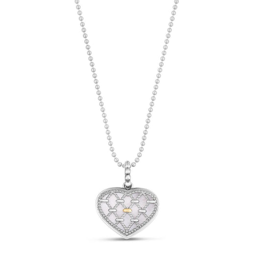 18K Gold & Sterling Silver Popcorn Heart Pendant on Sterling Silver Chain