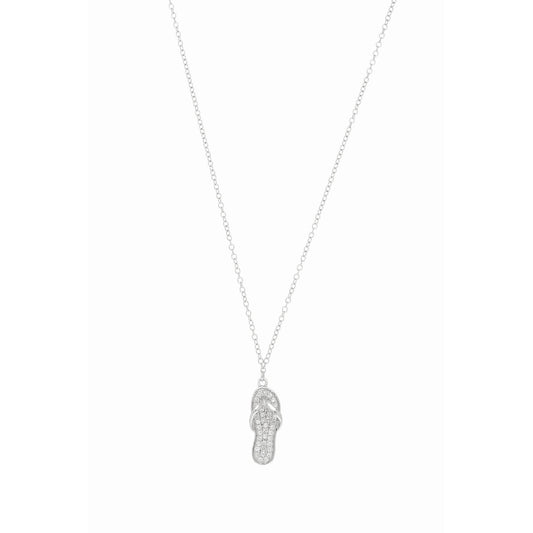 Sterling Silver CZ Flip Flop Pendant Charm Necklace