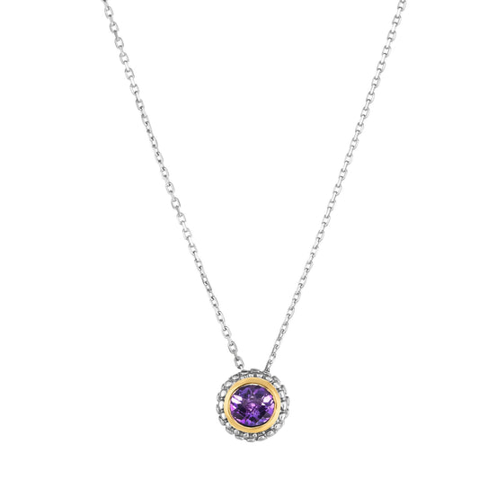 18K Gold & Sterling Silver Round Fancy Pendant Slide Necklace with Birthstone Options