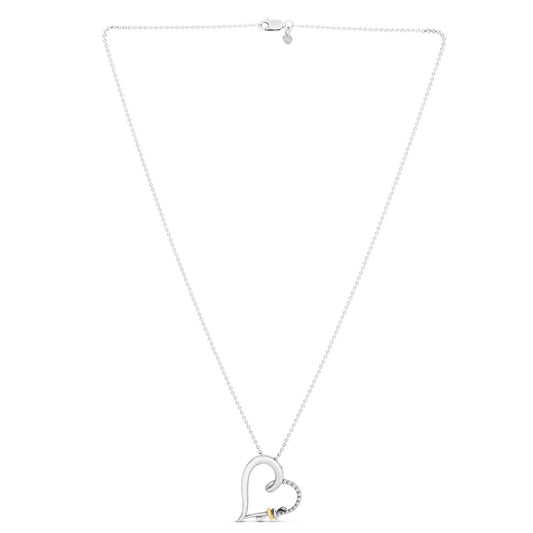 18K Gold & Sterling Silver Open Heart Popcorn and Love Knot Necklace
