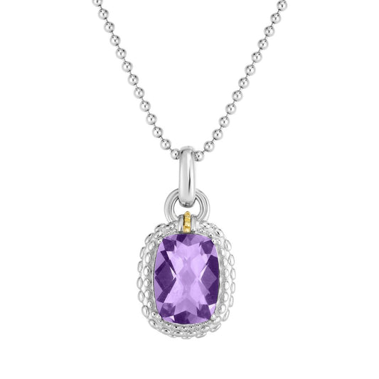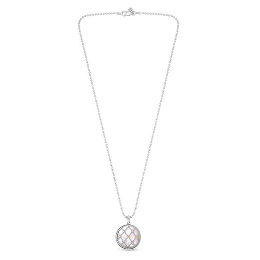 18K Gold & Sterling Silver Round Beaded Pendant on Sterling Silver Chain