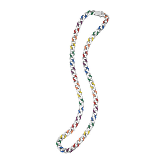 Sterling Silver Rainbow Enamel Miami Cuban Necklace with Box Lock