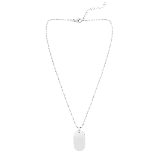 Sterling Silver Polished Oval Tag Necklace with Lobster Clasp