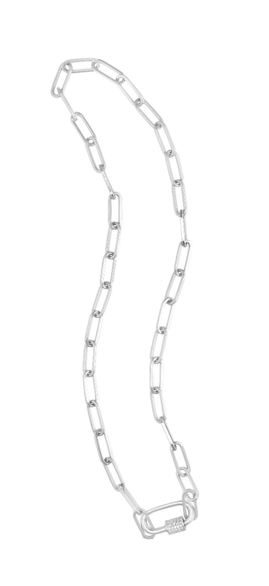 Sterling Silver White CZ Carabiner Open Links Necklace
