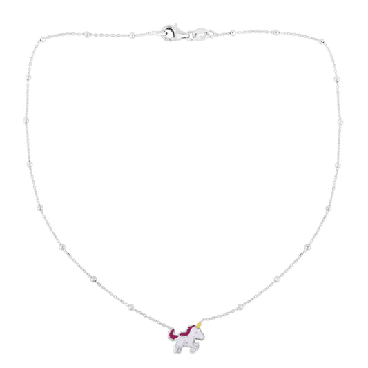 Sterling Silver Polished Enamel Unicorn Charm Necklace with Lobster Clasp