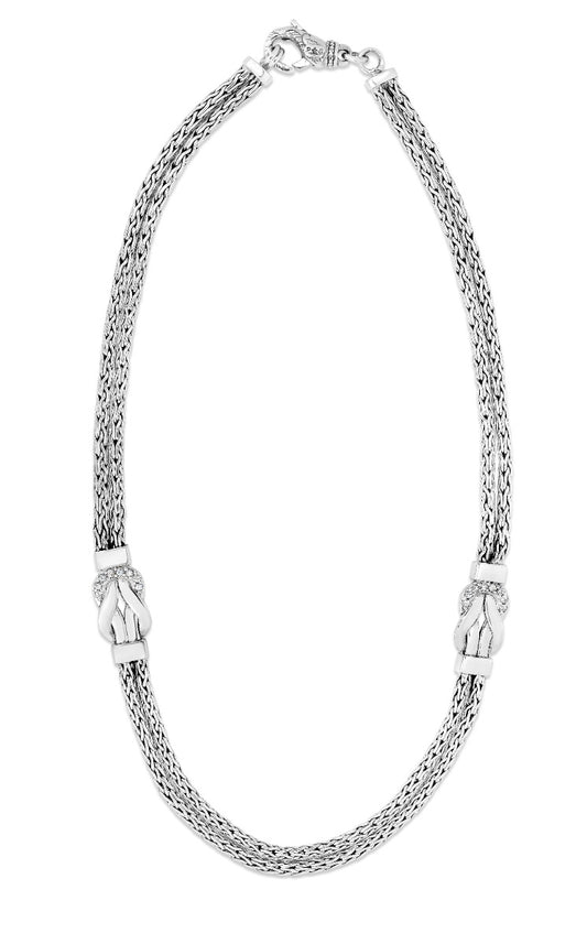 Sterling Silver Double Strand Woven Necklace with Round White Sapphire