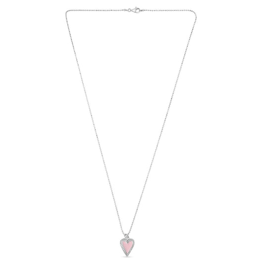 Sterling Silver Long Heart Charm Necklace with Lobster Clasp