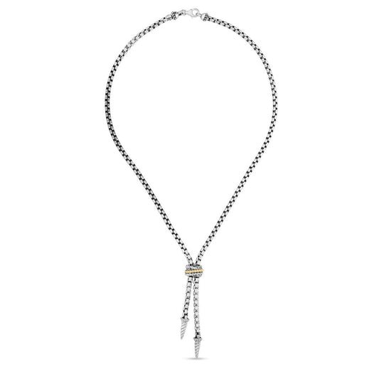 18K Gold & Sterling Silver Popcorn Lariat Necklace