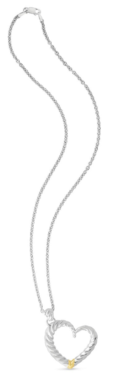 18K Gold & Sterling Silver Italian Cable Open Heart Necklace
