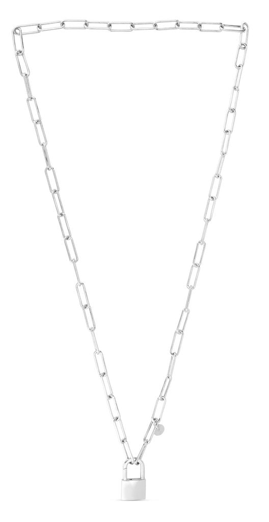 Sterling Silver Pad Lock Paperclip Link Necklace with Lobster Clasp