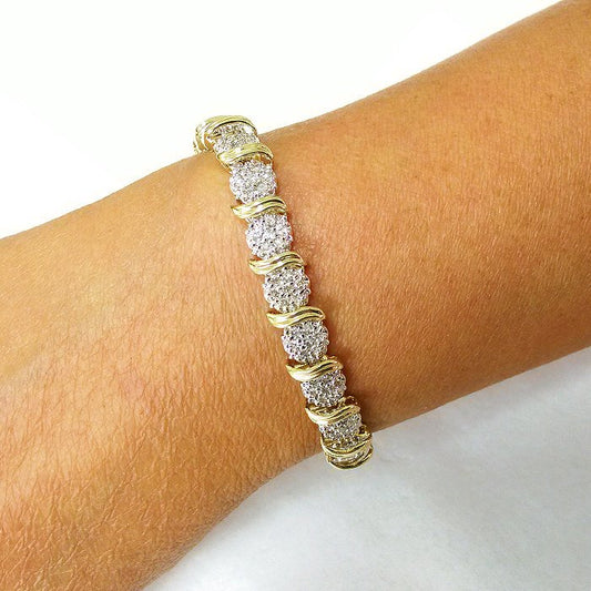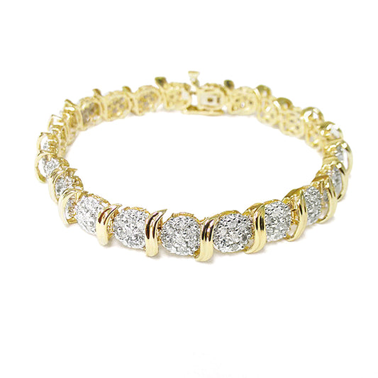2.45 ctw. Diamond Cluster wave Bracelet in Two Tone 14k White and Yellow Gold